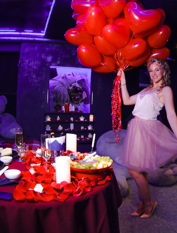 ● 3 часа аренды любого зала на Ваш выбор ● Романтическая атмосфера ● Украшение зала свечами и живыми лепестками роз ● Праздничная сервировка стола (оригинальное оформление стола) ● Приглушённый свет ● Романтическая музыка ● Удобный и мягкий диван с подушками ● Красивое слайд-шоу из Ваших фотографий ● Оформление воздушными шарами в виде сердец (15 шаров) УГОЩЕНИЯ: ● Шоколадное фондю с с экзотическими фруктами ● Чайник ароматного чая (чёрный, фруктовый, молочный улун) ● Два тематических капкейка ● Два вкусных чизкейка из Нью-Йорка ● Виноградный напиток 0,75 л. (оговаривается по телефону) ● Ужин на двоих (Корейская, Японская, Итальянская или другая кухня на выбор) (бюджет 2000 руб) А также: ● Сделаем памятное фото на Polaroid (1 шт.) ● Организуем интерактивную игру для двоих |